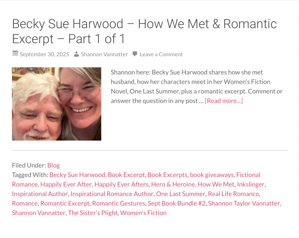 Shannon Taylor Vannatter featured my debut novel, One Last Summer, and I on her September 30, 2025 Inkslinger blog.